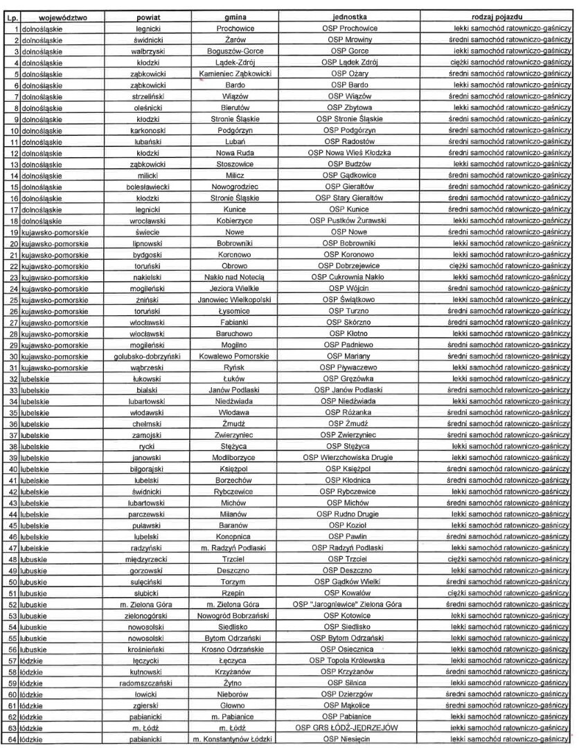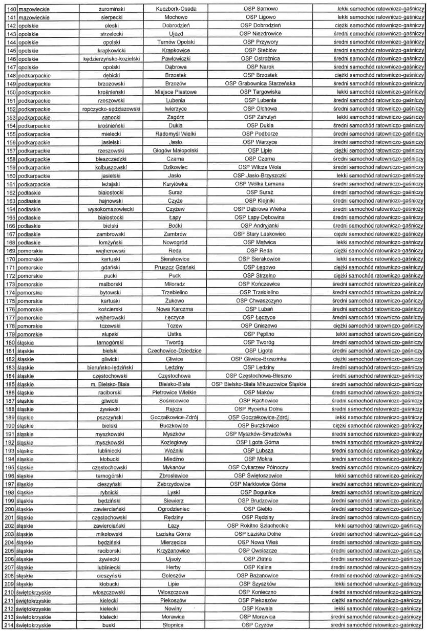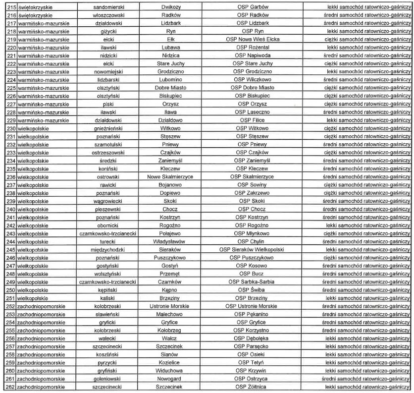 MSWiA zwraca też uwagę, że prezentowana lista nie zawiera wszystkich nowych pojazdów, które w tym roku trafią do jednostek OSP. Duża ich część zostanie zakupiona w ramach projektów dofinansowanych z programów regionalnych funduszy europejskich.