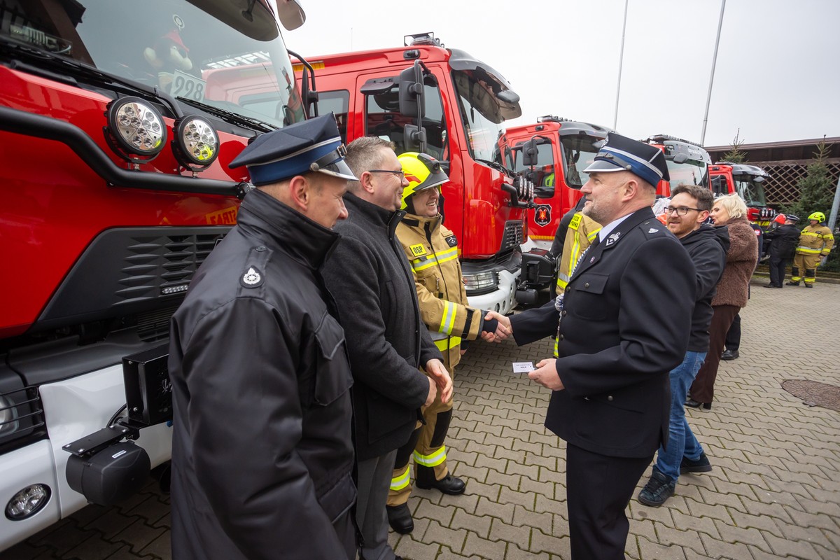W sobotę, 13 grudnia, w Ośrodku Szkolenia Komendy Wojewódzkiej Państwowej Straży Pożarnej w Łubiance odbyła się uroczystość przekazania 19 samochodów ratowniczo-gaśniczych dla jednostek Ochotniczych Straży Pożarnych z województwa kujawsko-pomorskiego. Nowe wozy trafiły do druhów w ramach projektu „Bezpieczne Kujawy i Pomorze”, realizowanego przy wsparciu środków Unii Europejskiej.
