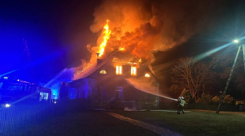 Gądków Wielki. We wtorek (25.02) po godzinie 1:00 strażacy z Sulęcina zostali powiadomieni o pożarze budynku plebanii parafii rzymskokatolickiej w Gądkowie Wielkim. Na miejsce zadysponowano zastępy PSP i OSP z Sulęcina i okolic. Po przybyciu pierwszych jednostek okazało się, że pożar jest już znacznie rozwinięty. Parterowy budynek z poddaszem był w całości zajęty ogniem. Płomienie wydobywały się na zewnątrz przez otwory okienne i uszkodzenia w dachu.