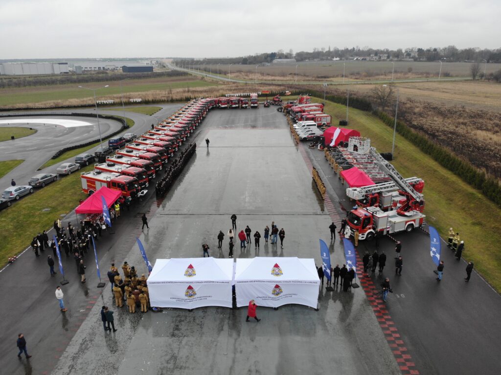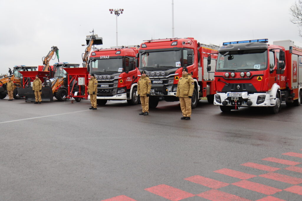 Nowoczesne samochody ratowniczo-gaśnicze, specjalistyczny sprzęt do działań wodnych, technicznych i chemiczno-ekologicznych oraz wyposażenie do reagowania na skutki zmian klimatu trafiły do jednostek PSP i OSP z województwa lubelskiego. Przekazanie sprzętu o wartości ponad 51 mln złotych, zakupionego w ramach projektu DKSRG odbyło się 12 grudnia 2025 roku w Lublinie.
