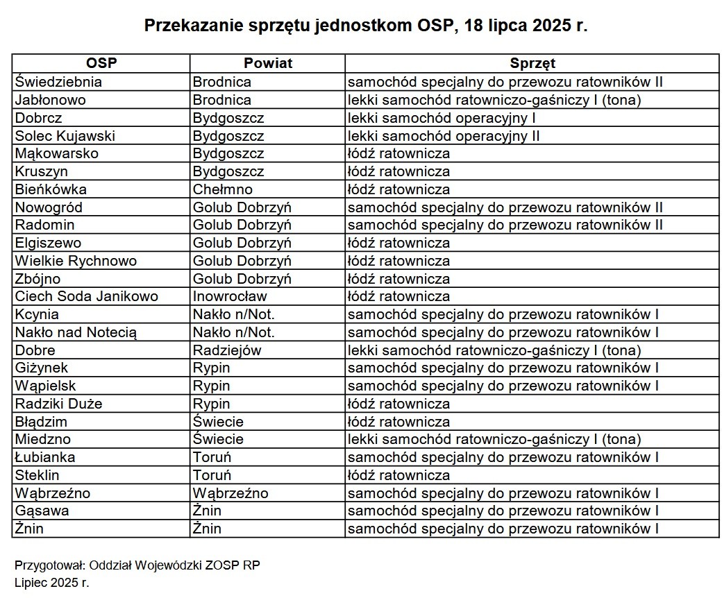 Nowoczesny sprzęt trafił do kujawsko-pomorskich OSP