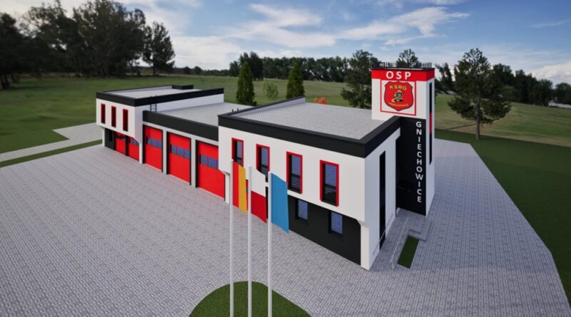 W środę (7.05) na Platformie Zamówień Publicznych Urzędu Miasta i Gminy w Kątach Wrocławskich na Dolnym Śląsku ogłoszono zamówienie, którego przedmiotem jest Budowa remizy OSP w Gniechowicach. Zgodnie z dokumentacją projektową nowy obiekt ma powstać na działkach w rejonie ulic Wrocławskiej i Piwnej w Gniechowicach. Nowa strażnica będzie obiektem częściowo dwukondygnacyjnym (skrzydła) i jednokondygnacyjnym (część garażowa pomiędzy skrzydłami). Bryłę główną budynku zaprojektowano na bazie prostokąta. Jej wysokość wyniesie nieco ponad 8 metrów. W bryle głównej zaplanowano też wieżę o wysokości 11,83 metra, która zostanie zaadaptowana na suszarnię węży pożarniczych.