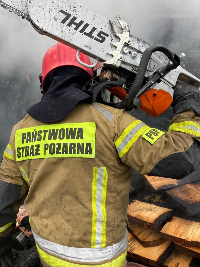 Działania strażaków natychmiast skupiły się na opanowaniu pożaru, zabezpieczeniu miejsca zdarzenia oraz zapobieżeniu dalszemu rozprzestrzenianiu się ognia. Akcję utrudniała ilość materiału zgromadzonego w budynku gospodarczym. Działania trwały ponad 5 godzin, brało w nich udział 15 zastępów i 72 strażaków.