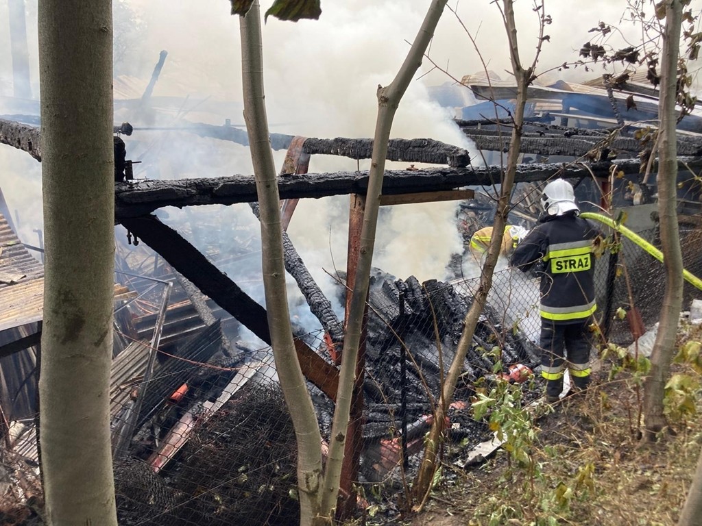 Pożar budynku gospodarczego w Bieńkówce. W akcji ponad 70 strażaków