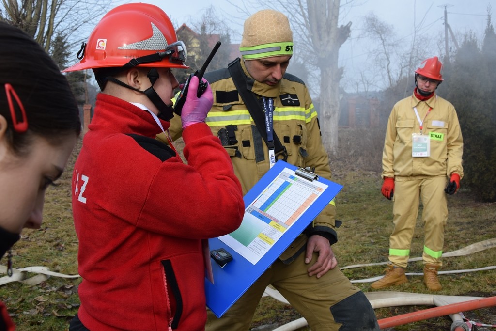 - instruktorzy z Forum Instruktorów Ratownictwo i Edukacja Drużyn Pożarniczych podczas praktycznych ćwiczeń na FireBox’ach uczyli technik poruszania się w zadymionym pomieszczeniu, kontrolowania czasu pracy oraz poprawnej komunikacji,
