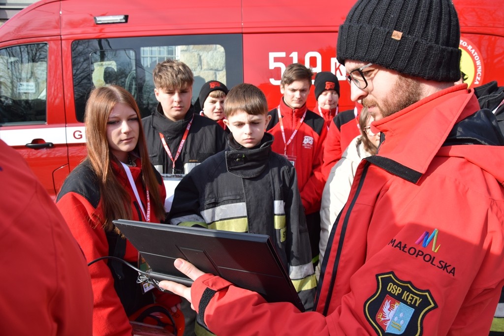 - strażacy z Ochotniczej Straży Pożarnej w Kętach dotyczyło wykorzystania nowoczesnych technologii podczas działań, omówiono wykorzystanie dronów w działaniach straży oraz zaprezentowano możliwości kamery wziernikowej,