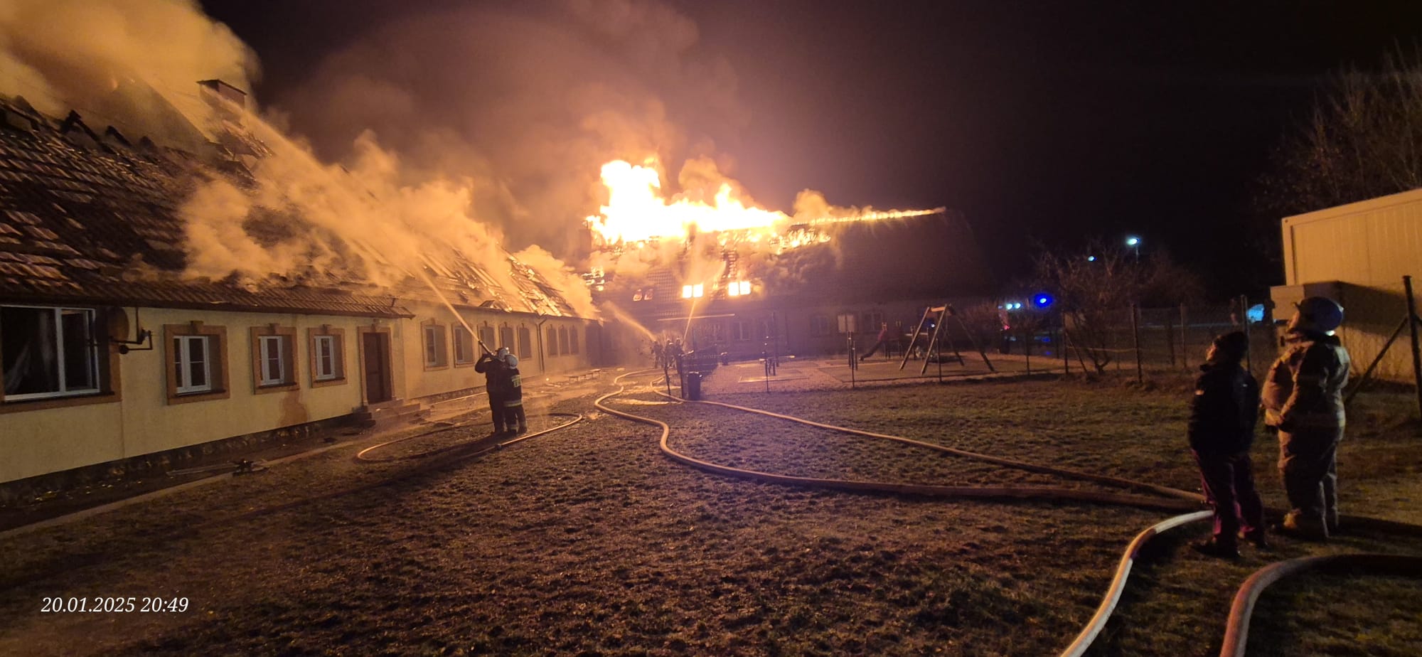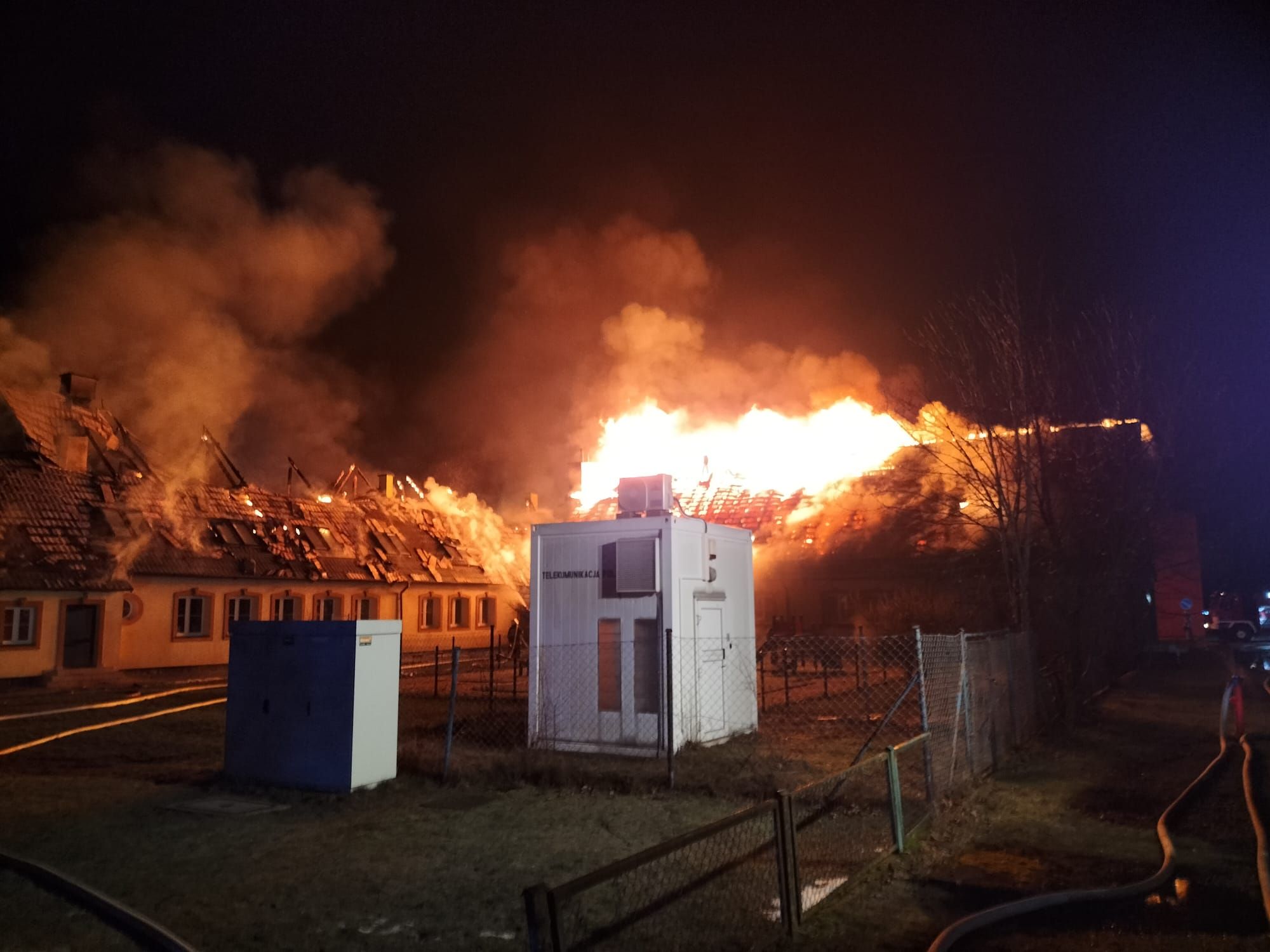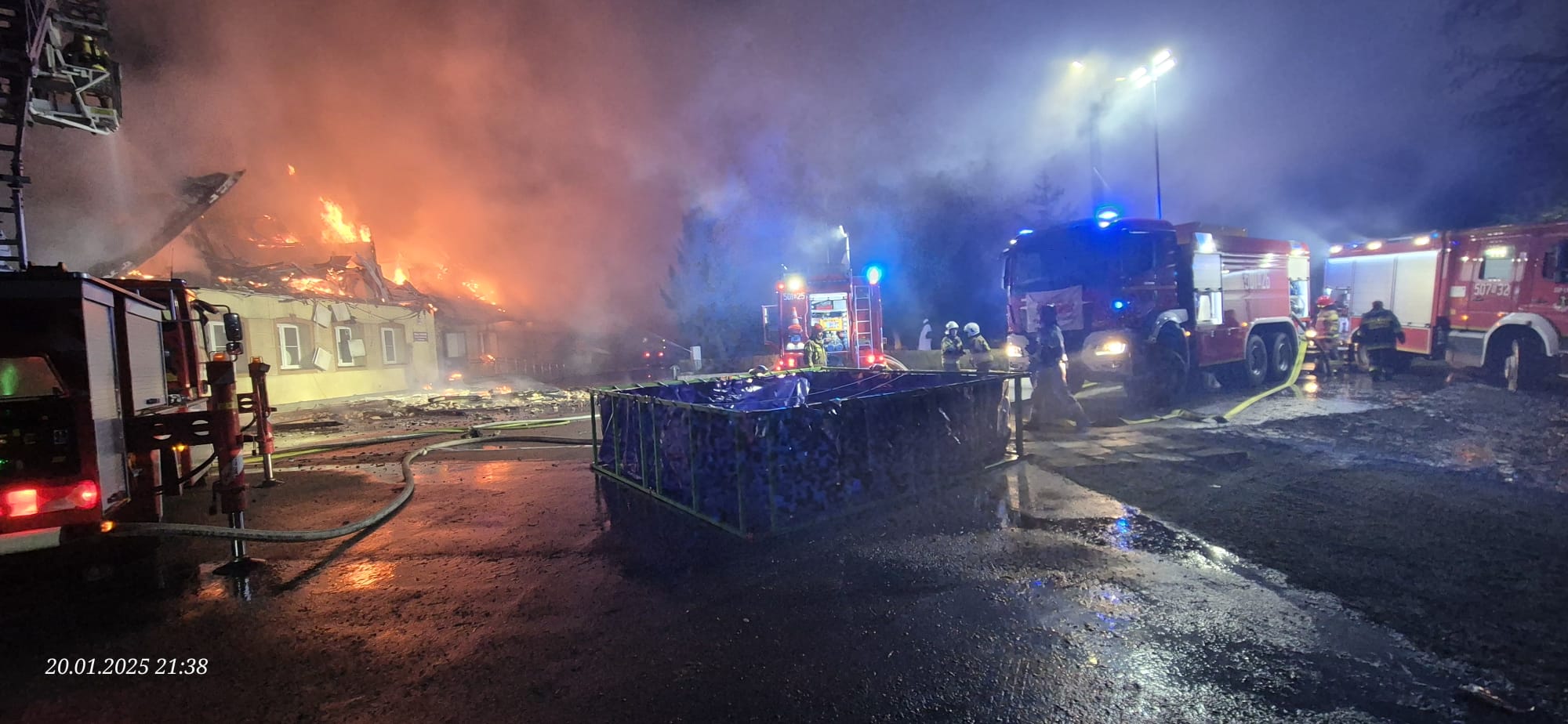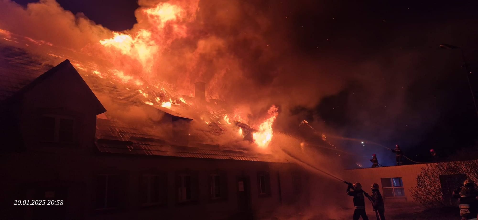 Szkotowo. W poniedziałek (20.01) około godziny 19:00 strażacy z Nidzicy w województwie warmińsko-mazurskim) zostali powiadomieni o pożarze budynku Szkoły Podstawowej w miejscowości Szkotowo. Na miejsce tego zdarzenia skierowano pierwotnie 10 zastępów PSP i OSP z Nidzicy i okolicznych miejscowości. Po przybyciu pierwszych zastępów ustalono, że ogniem zajęte jest poddasze na dwóch skrzydłach budynku.