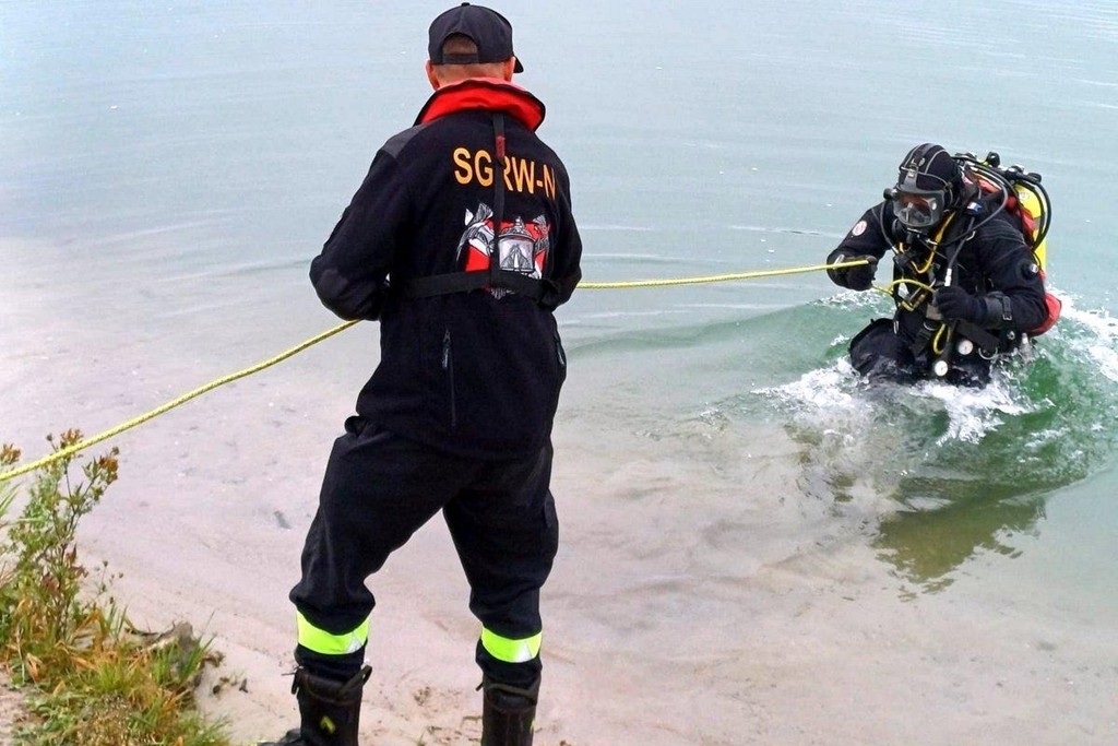 Operator koparki na terenie kopalni zauważył zatonięcie samochodu zepchniętego do wody. Sprawcy oddalili się.